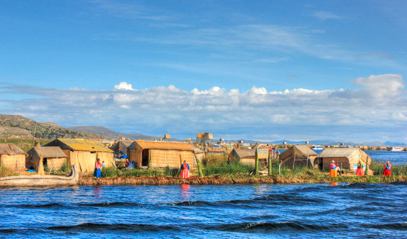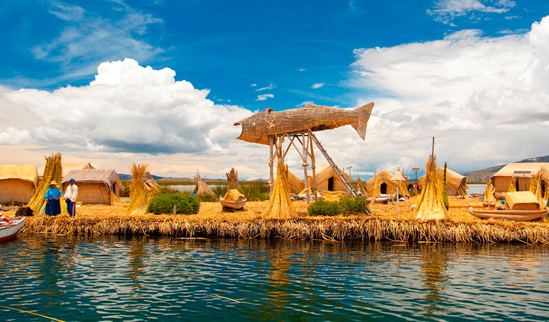 The floating islands of Uros are located inside the bay of Lake Titicaca only 14 Km. (9 miles) away from the city (20 to 30 minutes of navigation). The name Uros was used to name a very particular ethnic group that co-existed in Lake Titicaca with the Inkas, Aymaras and possibly with older civilizations. In fact, it is believed that the Uros were one of the first ethnic groups populating the Andean region. These people were simple fishers and bird hunters and preferred to remain isolated from the more advanced civilizations. Their search for isolation may be one reason why they decided to live in mobile houses on the Lake Titicaca.
